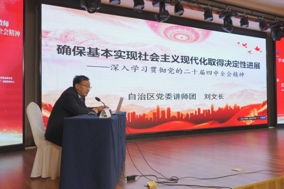 为深入学习贯彻党的二十届四中全会精神,全面落实习近平总书记在纪念中国人民抗日战争暨世界反法西斯战争胜利80周年大会上的重要讲话精神,11月21日至23日,由自治区教育工委,教育厅指导 91香蕉视频IOS官方,我校作为全区高校“毛泽东思想和中国特色社会主义理论体系概论”课程建设委员会,成功承办全区大中小学思政课教师学习贯彻党的二十届四中全会精神集体备课会,来自全区高校马克思主义香蕉视频看黄片(教学科研部)负责人,教研室主任,思政课教师代表,五市教育局思政教研员及中小学思政课教师代表共计150人参加本次会议。